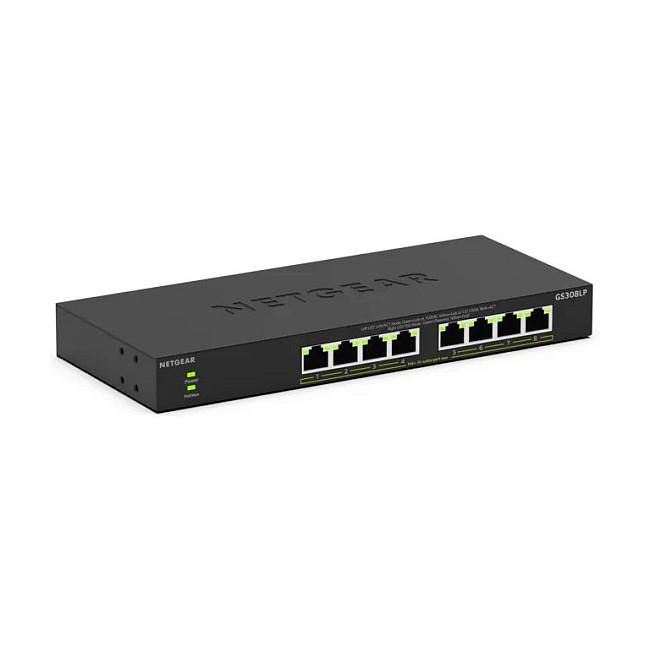 NETGEAR 300 Series GS308LP - Switch - Wesentliches - unmanaged - 8 x 10/100/1000 (PoE+) - Desktop, wandmontierbar - PoE+ (60 W)
