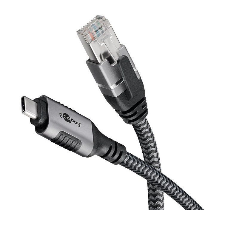 Goobay USB-C 3.1 > RJ45 (ST-ST) 3m Ethernet-Kabel Schwarz-Silber