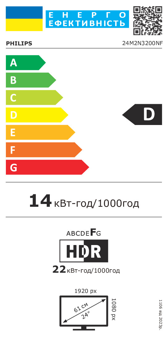 60,5cm/23,8" (1920x1080) Philips 24M2N3200NF 16:9 IPS 0,5ms 144Hz HDMI DisplayPort G-SYNC VESA Black